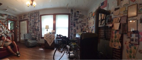 It’s dimly lit inside, but here’s a small example of how the house is decorated. It’s wild. Also notice Louis, from Chicago, who’s biking across with two of his other friends (not pictured).